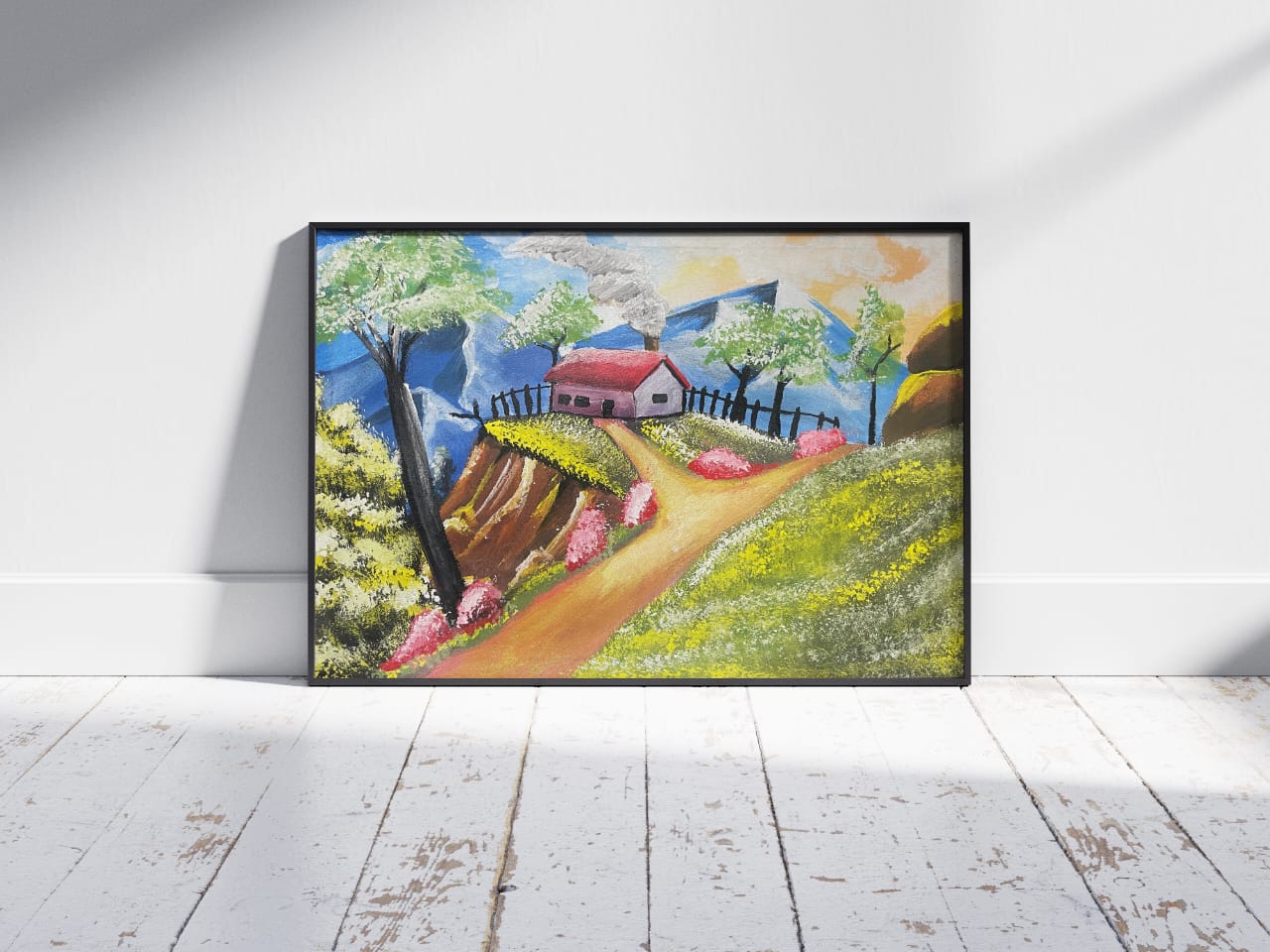ekosistem yang hidup digambarkan dengan sederhana namun penuh rasa. Lukisan ini