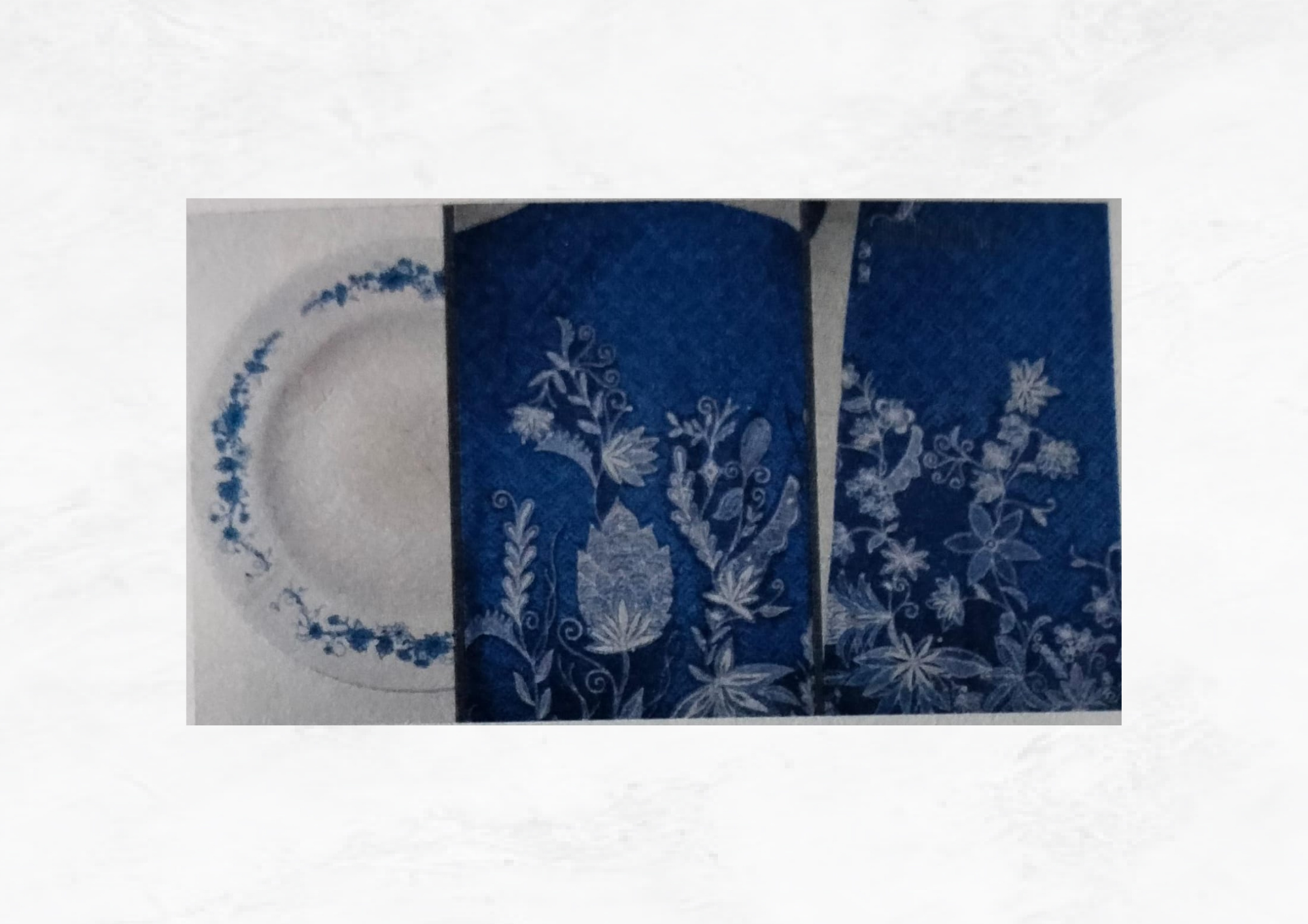 olahan dari motif flora pada piring tersebut, dipadukan dengan motif ubin