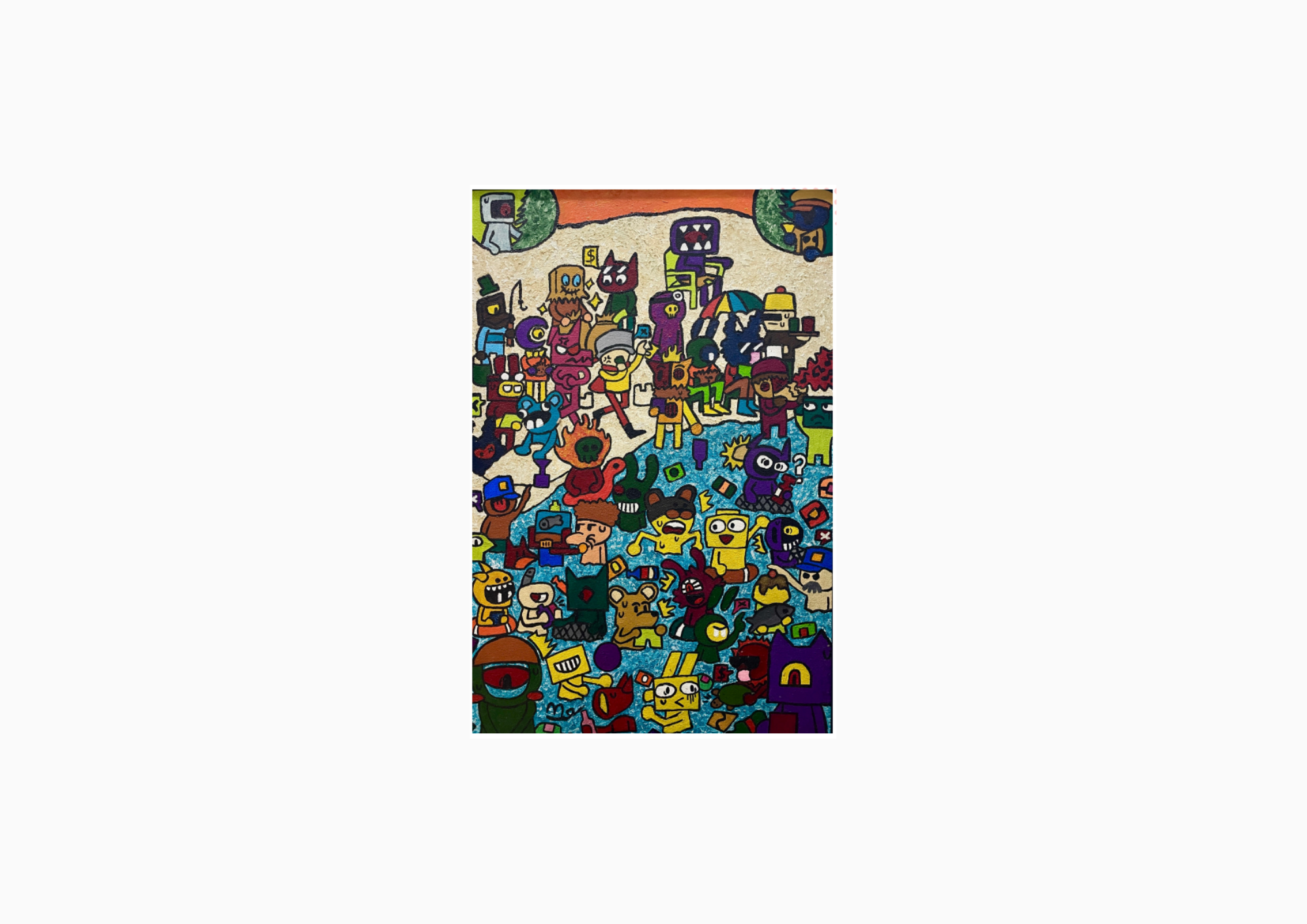 Lukisan akrilik berukuran 90x60 cm ini bukan sekadar tangkapan visual, melainkan sebuah manifestasi dari kegelisahan batin. Airlangga mengisahkan bagaimana pengalaman pribadinya saat menyentuh pasir pantai justru berujung pada rasa jijik dan kemarahan. Bukannya butiran alami yang ia rasakan di bawah telapak kaki, melainkan tekstur asing dari limbah plastik yang mengeras dan tertimbun.
